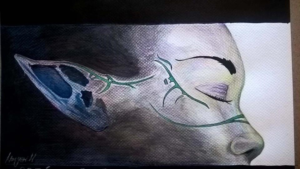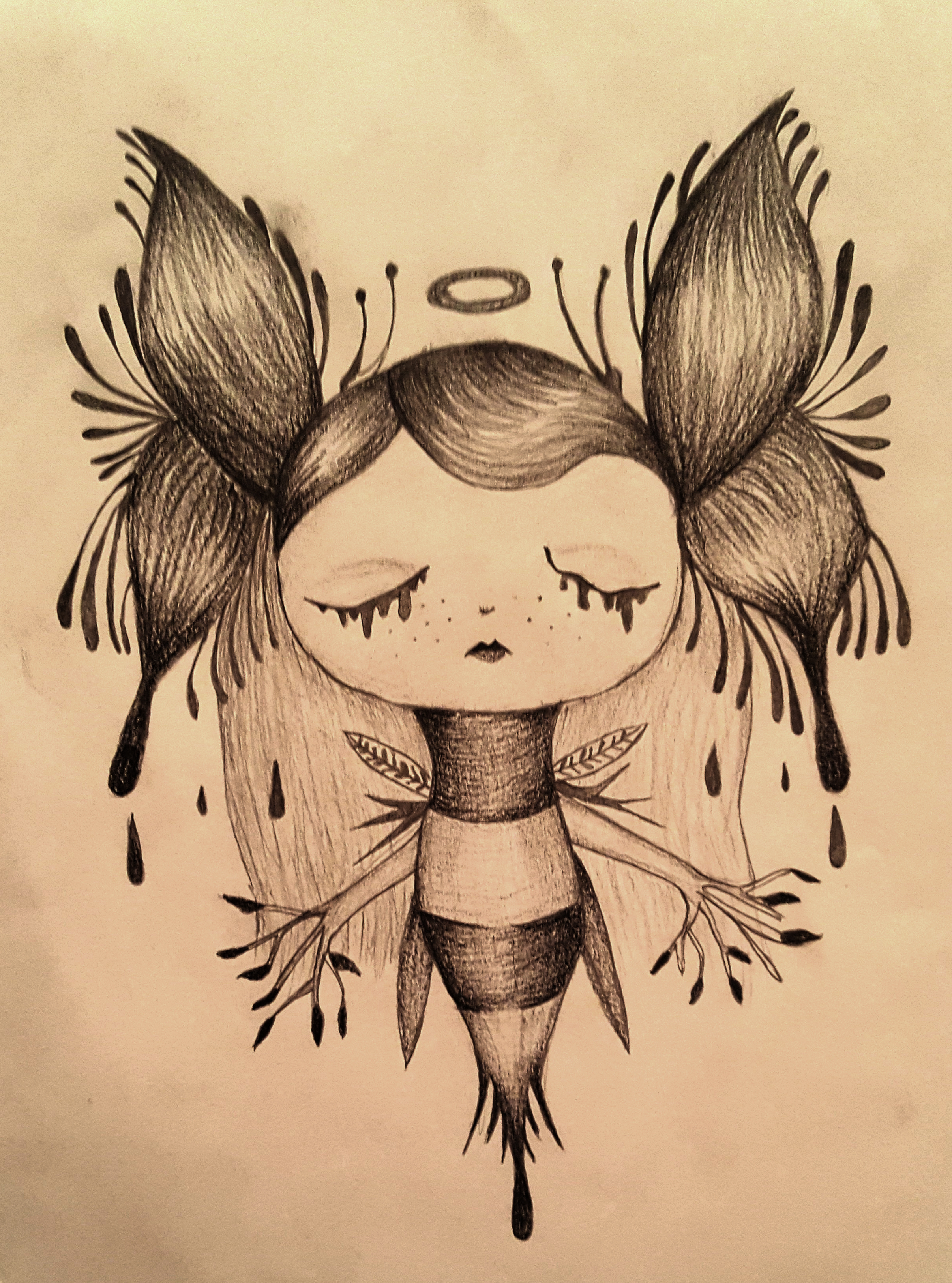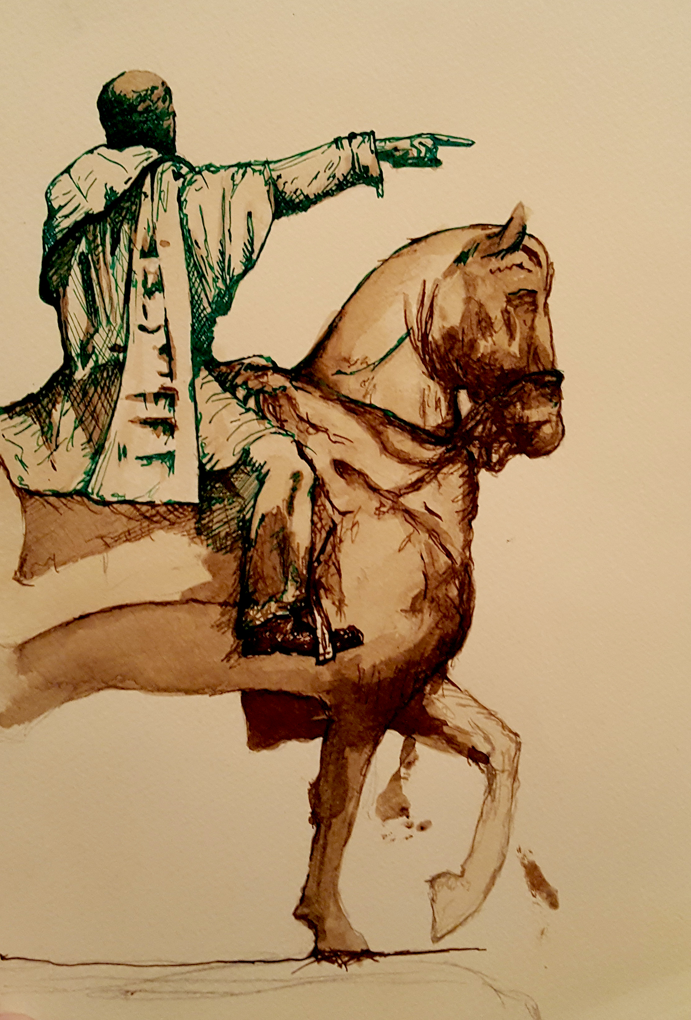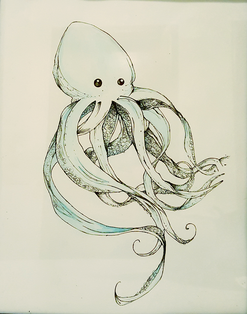 1.ink and a feather 2.watercolor 3.pencil